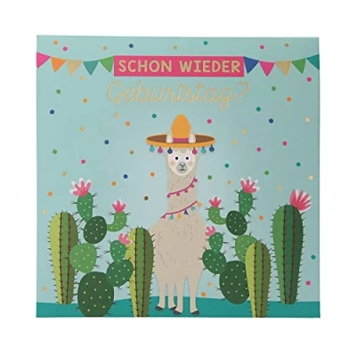 Elaborately designed music card for birthday Humorous Happy Birthday Greeting Card When you open the square folding card, the song "Fiesta Mexicana" sounds An original saying on the outside and inside with an elegant pop-up, music and light effect and space for your own personal message The high-quality card is made of sturdy paper and comes with matching envelope (approx. 17.0 x 17.5 cm)