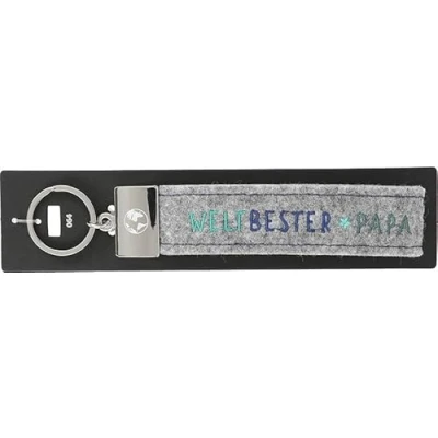 Depesche 004298 064 Looped Keyring Made of Felt, with Engraved Metal Finish and Iconic Print, World's Best Papa, Blue, Approx. 18.7 x 4.4 1 cm