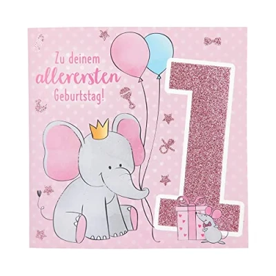 The lovingly designed music card is finished with hot foil Humorous 1st Birthday Greeting Card When you open the high-quality greeting card, the song sounds "Wie schön dass du geboren bist" Inside is an original message and space for your own personal message The square birthday card comes with a matching envelope (approx. 17.0 x 16.5 cm)