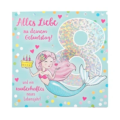 The lovingly designed music card is finished with hot foil Humorous 8th Birthday Greeting Card When you open the high-quality greeting card, the song "Zum Geburtstag viel Glück" sounds Inside is an original message and space for your own personal message The square birthday card comes with a matching envelope (approx. 17.0 x 16.5 cm)