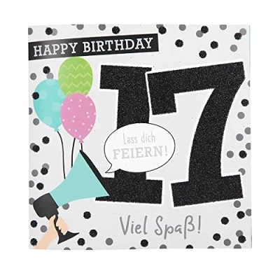 The lovingly designed music card is finished with hot foil Humorous 17th Birthday Greeting Card When you open the high-quality greeting card, the song sounds "We want to celebrate (I like to move it)" Inside is an original message and space for your own personal message The square birthday card comes with a matching envelope (approx. 17.0 x 16.5 cm)