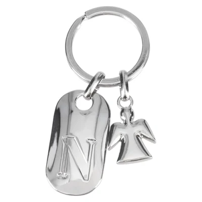 SilverZinc Alloy Keyring A letter pendant N As well as a guardian angel pendant in a simple design Includes a small velvet bag as a beautiful gift box Ideal as a gift for a birthday, Mother's Day, Father's Day, driving licence or just because for a loved one
