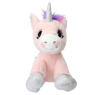 Plush toy for little girls and boys Design: Ylvi by Depesche - In purple, with a colourful mane in rainbow colours and a silver horn and hooves Plush toy with soft cuddly fur, pink glittering eyes and a small embroidery on the back Cuddly friend for everyday use, leisure, travel or simply for relaxing and falling asleep Dimensions: approx. 21 x 15 x 15 cm, Manufacturer: Depesche Vertrieb GmbH & Co. KG