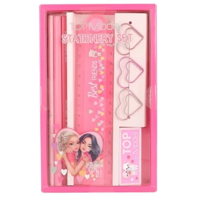 Depesche 12857 TOPModel Stationery Set in Pink with Patterns and Hearts Design Including Pencils, Rubber, Ruler Much More, Multicoloured