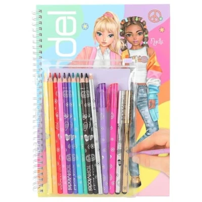 Depesche 12943 TOPModel Book Set with 76 Pages for Designing Model Motifs, Including Colouring Template, Sticker Sheet, pens and Much More, Multicoloured