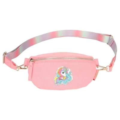 Practical crossbody bag for girls Design: Ylvi by Depesche - in pink with unicorn batch, pastel colour gradient and silver sequins The bum bag has a main compartment, which offers enough space for mobile phone, keys, wallet and much more. The carrying strap is adjustable in length and ensures comfortable wearing as a bum bag or crossbody close to the body Dimensions: approx. 18 x 10 x 4 cm