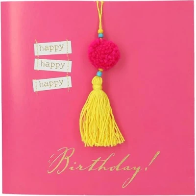 Quality Pop Up Greeting Card with Envelope Square card intricately designed with a colourful design, appliqued accessories and matching saying Inner part of the folding card is without text and thus offers plenty of space for personal words, messages and messages The double card is made of sturdy paper and comes with a matching coloured envelope Size of the card approx. 16.4 x 16.4 cm. Weight: approx. 28 g