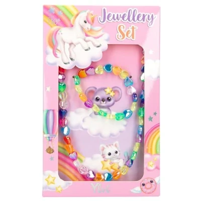 Jewellery set for girls and beauty fans Design: Ylvi by Depesche jewellery with colourful heart beads and light glitter effect The set consists of a length-adjustable chain with metal clasp and a matching bracelet with elastic band Cute jewellery set as accessories for chic styles and outfits at school, everyday life and leisure Dimensions: approx. 18 x 11 x 1.5 cm