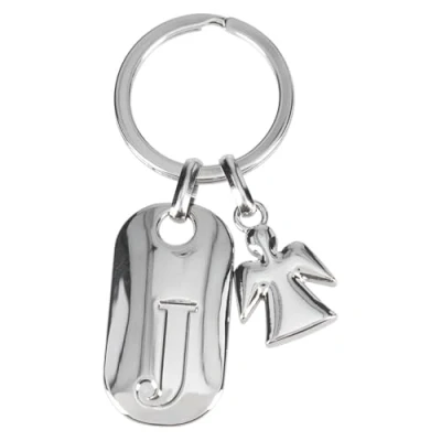 SilverZinc Alloy Keyring One Letter Pendant J As well as a guardian angel pendant in a simple design Includes a small velvet bag as a beautiful gift box Ideal as a gift for a birthday, Mother's Day, Father's Day, driving licence or just because for a loved one