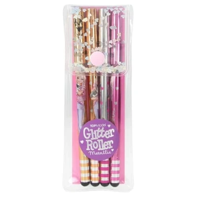 Depesche Topmodel 12744 Metallic Gel Pen Set in Transparent Case, 4 Pens Glitter Colours for Writing and Decorating