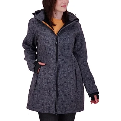 Deproc Active Women's Keele Peak Lined Short Coat with Removable Hood Softshell Transition Jacket, Black Print, 40