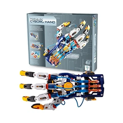 HYDRAULIC CYBORG HAND. The Cyborg Hydraulic Hand simulates the movements of a human hand using hydraulic energy for mechanical transmission without electricity. Allows each finger joint to be adjusted at different angles for a precisely closed fist or an open palm. You can use different gripping techniques to hold a variety of items. Recommended for ages 8+ USABILITY. You can use different gripping techniques to hold a variety of items of very diverse sizes. It can also be used perfectly by right or left handed users due to its innovative and adjustable design. Users can change the thumb to make it easy to use according to their preferences. ADJUSTABLE Can easily adjust the hand to fit a wide variety of hand sizes (palm and finger length) The cyborg hand will fit and operate smoothly for both kids and adults. Includes: The box contains 203 pieces to assemble the Cyborg hand. Additional tools are required for assembly as indicated on the box. DIMENSIONS Assembled hand measures 40 cm. Recommended toy for boys and girls ages 8 and up., Manufacturer: Deqube