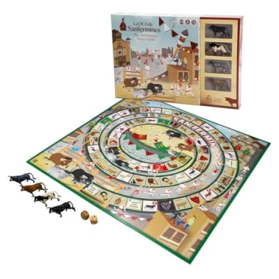THEMATED GOOKE GAME. It is the classic game of the goose but with the design, sayings and peculiarities of the wonderful festivals of Pamplona. Dive into the San Fermin festivities as you progress through the board full of exciting and challenging squares. Will you be brave enough to jump the bull's squad and gain an edge in the race? Show it! Don't miss the opportunity to experience the excitement of San Fermín in your own home! INCLUDES 4 miniature bulls that will serve as tokens. They are hyper-realistic hand-painted figures of the international brand Collecta. It also includes instructions in Spanish, English and French. Plus 2 wooden dice and lots of city secrets and those parties all over the box. PERFECT GIFT FOR ALL AGES. This board game offers you a unique experience for the whole family and friends. Whether you are looking for a special gift for someone or just want to add fun and joy to your gatherings, DeQuBe's San Fermin de la Goose set is the perfect choice. HIGH QUALITY AND SAFETY. The DeQuBe San Fermin Goose game has been manufactured with all the safety controls required by law. Premium materials to ensure durability. Not suitable for children under 3 years due to small parts. DIMENSIONS The dimensions of the game board are 50X50cm. Bulls measure approximately 6X3cm., Manufacturer: DeQube