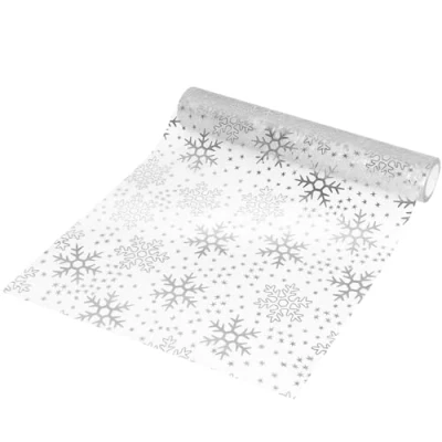 Package Includes: You will get 16.4 Yards/ 15 meters sliver metallic table runner, the size of width is 28 cm/10.9 inch, easy to use for decorating Christmas Snowflakes Foil Design: This sparkling aluminum foil polyester roll, printed with snowflakes pattern design, adds a festive atmosphere and makes your dining table more exquisite Safe Material: Our Christmas table runner is made of polyester organza and glitter foil, soft and odorless, and wrapped in plastic protective film to avoid spreading or scattering Easy to Use: You just need to measure the size of the packaging you want first, and then smooth to cut it, which will make your Christmas decoration very shiny Great DIY Decoration: This table runner also can be used for bouquet packaging, gift wrapping, tutu skirts, chair sashes, table decorations, wedding or prom decorations, wreaths and other decorations