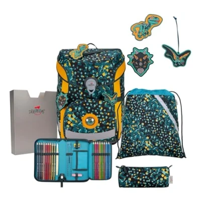 DerDieDas ErgoFlex Easy Dino Time School Bag Set of 5, Green,