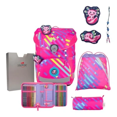DerDieDas ErgoFlex Easy Neon Punkie School Bag Set of 5, Pink,