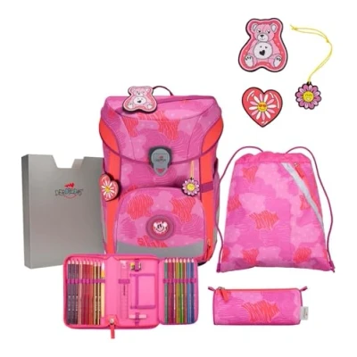 DerDieDas ErgoFlex Easy School Bag Set 5 Pieces Roses,