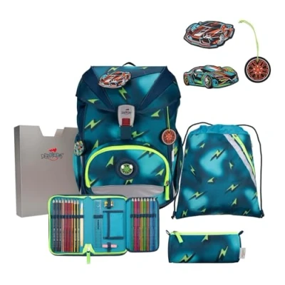 DerDieDas ErgoFlex Superlight Magic Light School Bag 5 Piece Set, Blue, Set