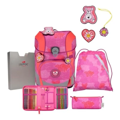 This school bag from DerDieDas will be the faithful companion of your school child. The ergonomically shaped back of the school bag and the breathable straps allow for great comfort. The colour-coordinated pencil case and the sports bag complete the set. Dimensions: 28 x 38 x 22 cm