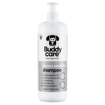 DOG SHAMPOO FOR SENSITIVE SKIN - Give your furry friend the gentle care they deserve with Buddycare Derma Sensitive Shampoo, specially formulated for dogs with sensitive skin, with aloe and pro-vitamin B5 for a soothing bath time. DERMATOLOGICALLY TESTED - This shampoo's mild formula is perfect for dogs with sensitive skin, and free from fragrances, dyes, SLS and parabens, so you can trust it to keep your pup clean without skin irritation. WITH ALOE & PRO VITAMIN B5 - Buddycare Sensitive Dog Shampoo is made with salon-quality ingredients together with aloe vera and pro-vitamin B5 work to nourish and protect their coat. VEGAN & CRUELTY FREE - Buddycare’s healthy, happy credentials and commitment to animal welfare means you can enjoy peace of mind with every dog wash. It’s grooming you can feel good about. BUDDYCARE - You know your best friend better than anyone, and Buddycare knows dog grooming like the back of its paws. Our range of Dog Shampoos make bath time (almost) a walk in the park!
