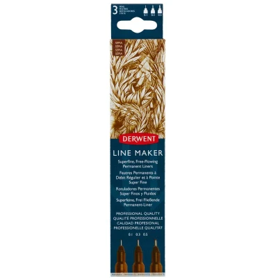 Capture timeless detail with the Derwent Line Maker Sepia (3) set. These professional fine liner pens deliver rich sepia tones that bring warmth and character to your drawings, sketches, and illustrations. Ideal for artists who appreciate classic color with modern precision.. Each pen features a fine 0.0mm nib designed for smooth, controlled ink flow, allowing for delicate lines, expressive outlines, and layered shading. The permanent pigment ink is fade-resistant and quick-drying, ensuring clean, smudge-free results every time.. Key Features:. Permanent sepia pigment ink for a warm, vintage finish. Fine 0.0mm nibs provide accuracy and fluid line control. Water-resistant and fade-resistant for lasting artwork. Perfect for sketching, journaling, outlining, and design work. Includes: Three fine liner pens in deep sepia tones for versatile creative use.. Perfect for artists, illustrators, and calligraphy enthusiasts, this set combines the charm of traditional ink drawing with the precision of modern pen design — ideal for creating expressive, long-lasting art.
