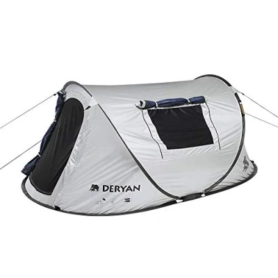 DERYAN BV Luxe Dome Travel Tent Pop Up Set in 2 Seconds Anti Uv Suitable for Persons Silver/Black