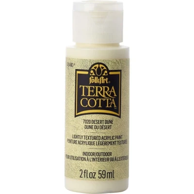Create beautiful textured pieces of art with FolkArt Terra Cotta Acrylic Paint. This specially formulated premium-quality acrylic paint is lightly textured and will add a subtle, raw terra cotta texture to your arts and crafts projects. Ideal for use on a variety of porous and non-porous surfaces, FolkArt Terra Cotta has a durable, multi-surface formula. Use these unique weather-resistant colors on all your indoor or outdoor projects.