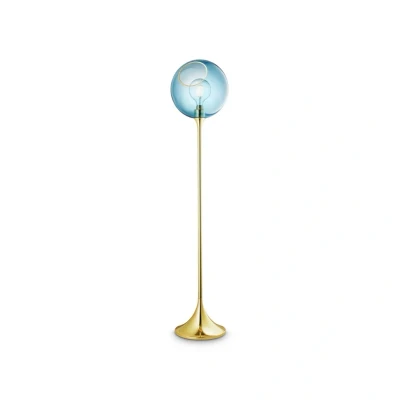 Lamp MastersBallroom Floor Lamp Blue Sky/Gold is a popular lamp by the untraditional brand Design By Us. The handblown glass dome is hand-painted with either brass or silver on the bevel. Design By Us has colour in their DNA, which comes through in the Ballroom collection, which is available in a range of colours. The simple design on the base of this lamp is thorough. The uncomplicated shape creates an elegant expression that arouses curiosity and joy. The lamp is available with a brass or black base depending on the colour of the lampshade—the perfect contrast for the white walls of Scandinavian interior design. NB! As the glass lampshades are handblown, inconsistencies may appear. The Ballroom collection comprises pendants in two sizes, a decorative ceiling lamp, and a floor, wall, and table lamp..