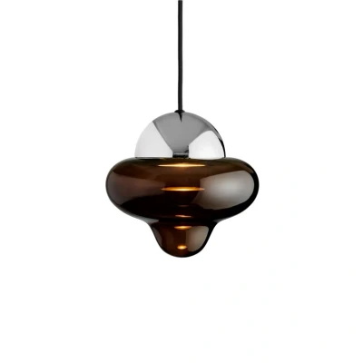 The Nutty Pendant Light Brown/Chrome is a sumptuous and elegant design that will undoubtedly be an eye-catching and admired addition to your interior. The Nutty pendant light is available in a variety of sizes and colours, so you are free to choose the model or models that best suit your needs and style. Common to all Nutty pendant lights is the unique mouth-blown glass lampshade, which is inspired by nature and more specifically an acorn.