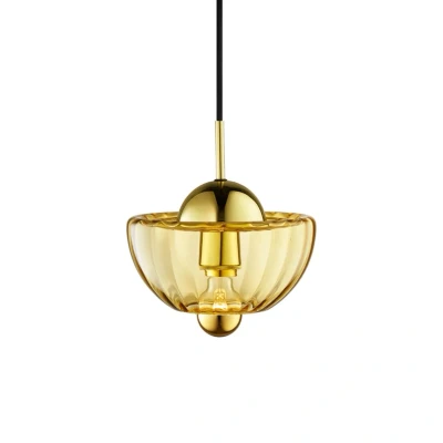 The Lotus Amber pendant light is an extremely elegant and stylish light that is guaranteed to be an eye-catcher in your interior design. As the name suggests, Lotus is inspired by the beautiful and symbolic lotus flower, as the shape of the light is reminiscent of the lotus flower just before it blooms, and when the light is switched on, the wavy glass pendant light creates an aesthetic play of light that reflects the petals of the flower. The light is also handmade from glass with beautiful metal details that blend beautifully into the pendant light. Lotus is available in two different colours, so you can choose the model that best suits your style. Please note that this is a handmade design and therefore each pendant light is unique in its pattern and expression – just like the lotus flower.