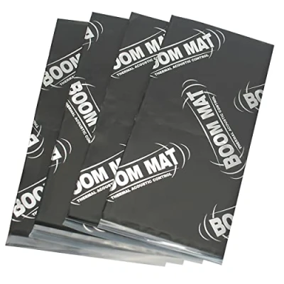 Peel and stick vibration reduction material Quickly improving speaker sound and performance by reducing vibrations and improving acoustics Includes four sheets of 6" x 12.5" (2.1 sq. ft.) Boom Mat Damping Material Simply remove the speaker, apply Boom Mat on metal mounting surface and re-install speaker