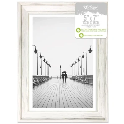 Design Group White Solitaire Shabby Chic Distressed Wood Styrene Photo Frames 5x7