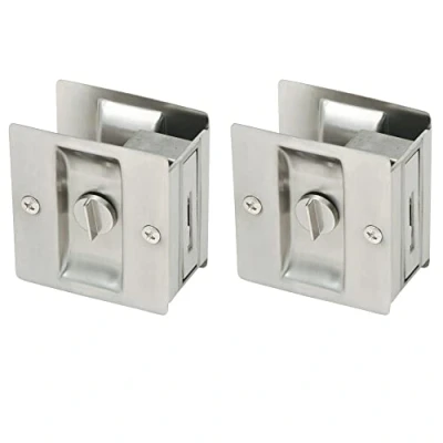 Design House 182121 Pocket Door Bed and Bath Lock, 2 Pack, Satin Nickel