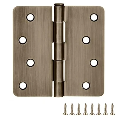 Design House 186080 Door Hinge in Antique Brass, 4 Inch, 1/4 Inch Radius, 6 Pack, Pack