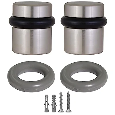 Protect Doors & Walls: Prevent doors from slamming shut and causing damage to both the door and adjacent walls by adding these wall protectors Value Pack of 2 Door Stops: Two modern cylindrical door stoppers are included for convenience Easy Installation: Simply install the door stop to the floor with a screw or drill within minutes Durable Construction: Constructed of corrosion-resistant brass to withstand moist areas for durability while still being stylish in the sleek satin nickel finish Two Sets of Bumper Colors: Choose between included gray or black bumpers to best accent your decor and reduce marks on your door, Weight: 0.45 pounds, Manufacturer: Design House