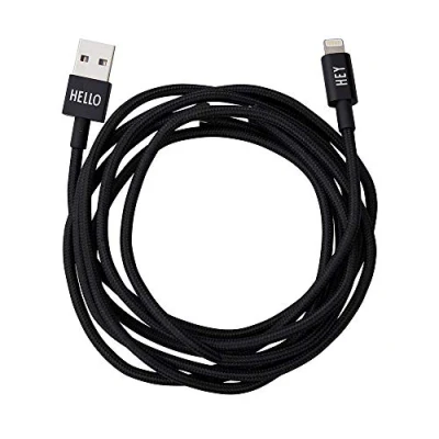 Design Letters Extra long cable, compatible for iPhone, 1.85 M. (Black) CE Certified, RoHS and REACH cable with USB 2.0, Nylon braided, your personal