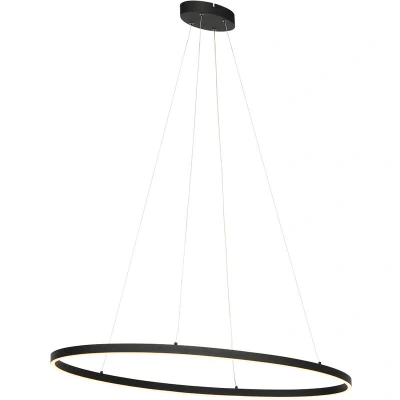 QAZQA Design Pendant Light Black Oval Incl. LED 3-Step Dimmable - Ovallo Does your designer interior need an update? Then the Ovallo pendant light is exactly what you're looking for! This pendant light is made of steel and plastic and finished in black. The lamp is equipped with integrated LED lighting. Ovallo has a height of 120 cm, a length of 100 cm and a width of 50 cm, and is easily adjustable in height. You can also choose to hang the lamp at an angle for a fun effect! The integrated LED lighting has an average lifespan of 30,000 hours and consumes 30 watts. With a maximum light output of 1800 lumens, the pendant light is suitable for functional lighting. This pendant light is 3-step dimmable, which means you can adjust the brightness yourself via the switch, ranging from 100% functional light to 30% ambient lighting. Don't hesitate any longer and choose Ovallo! Bulb holder: (non replaceable) LED . Max 1 x 30 W, 230 V Suitable for: LED Connecting voltage: 220V/230V Protection