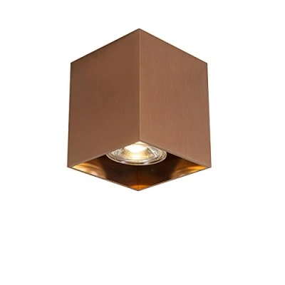 General description Super sleek design spotlight made entirely of aluminum with a copper-colored finish. The inside where the lamp is placed is also colored, making it very nice to combine multiple in different colors. Suitable for various indoor spaces such as dining rooms, hallways, offices, kitchens, bedrooms, stores, and living rooms. Technical specifications Height: 9.5 cm Length: 8.3 cm Width: 8.3 cm Mounting plate dimensions: 8.3 cm x 8.3 cm Bulb holder: GU10 Max wattage: 1 x 50 W Voltage: 220V/230V Protection class: IP20 Dimmable: Yes (dimmer not included) Light source: Exclusive Compatibility and accessories Compatible with halogen and LED light sources Requires a GU10 fitting (max. 50 Watt) Light source and dimmer are not included Usage Make your interior super sleek with the Qubo! This spotlight is perfect for enhancing the ambiance of your living spaces. Other information