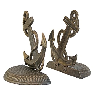 Design Toscano Maritime Anchor Cast Iron Sculptural Bookend Pair