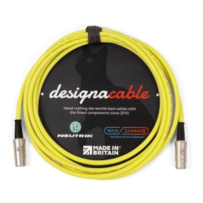 designacable.com 3m Yellow Flexible Midi Lead Handmade in the UK using Van Damme XKE Cable & Rean NYS322 5 Pin DINs.