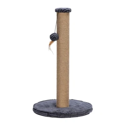Compact and practical, this cat tree offers a versatile scratching and play option without taking up much space. The integrated play ball with feather provides extra fun and promotes your cat's activity. The stylish cat tree adds a luxurious accent to your decor thanks to the ribbed fabric base plate. The trunk wrapped with durable jute rope provides an ideal surface for vertical scratching This cat tree helps protect your furniture from unwanted scratch marks by providing an attractive alternative.