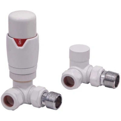 Designer Corner TRV Thermostatic Towel Rail Radiator Valves 15mm White Energy Saving
