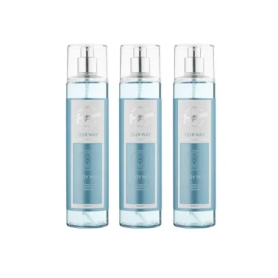 Designer Fragrances 3 Pack Our Way Bundle Women's Feminine Body Mist Sprays For Silky Soft, Beautifully Smelling Divine & Fresh Skin, Revitalizing, Hydrating Great Gifts 250ml