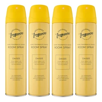 Designer Fragrances 4 Pack Daisee Air Freshener Room Spray Cans For Home & Vehicles Natural Oils, Luxury Lasting Sunny Floral Smell, Quick Release Deodorise Neutralise Odours 300ml