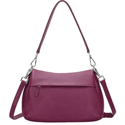 Designer Genuine Real Nappa Leather Handmade Women Ladies Travel Satchel Everyday Crossover Cross body Work Shoulder Handbag Bag (Burgundy)