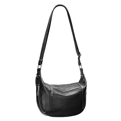 Designer Genuine Real Nappa Leather Handmade Women Ladies Travel Satchel Small Everyday Crossover Cross body Work Shoulder Handbag Bag (Black)