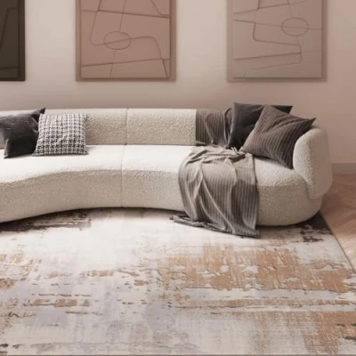 Designer Greige Abstract Living Room Area Rug Neutral Textured Polyester Painterly Carpet Stain Resistant Grey Beige Paint Brush Lounge Hallway Rugs 120cm x 170cm