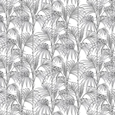 An all over palm leaf design with a metallic effect and a lightly glittered background. Shown in the silver colourway. Coordinating plain available.