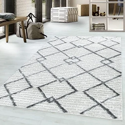 Design: This easy-care rug is a very high quality product that enhances all living spaces and looks elegant, whether in the living room, bedroom, children's room or dressing room. Quality: machine-woven rug made from 100% PP with cutout (10 mm) and a pile height of 20 mm, a weight of 2150 g per m², in cream colour, size 140 x 200 cm Features: With us you will find not only bedroom rugs in all colours, but also different shapes, designs and different designs. Wide selection: whether for your bedroom, living room, entrance hall, office, dressing room, conservatory or kitchen. With us you will find the ideal rug. Feel-good ambience: the rugs for living rooms etc. make your living dreams come true, because our rugs from Giantore give every room a cosy atmosphere.