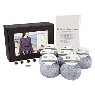 DesignEtte Jumper Chinese Lanterns Knitting Kit 100 Percent Egyptian Cotton Wool Yarn Bowls and Pattern Starter Pack Box 100g≈205m/5ply, Light Grey 790, Extra Large